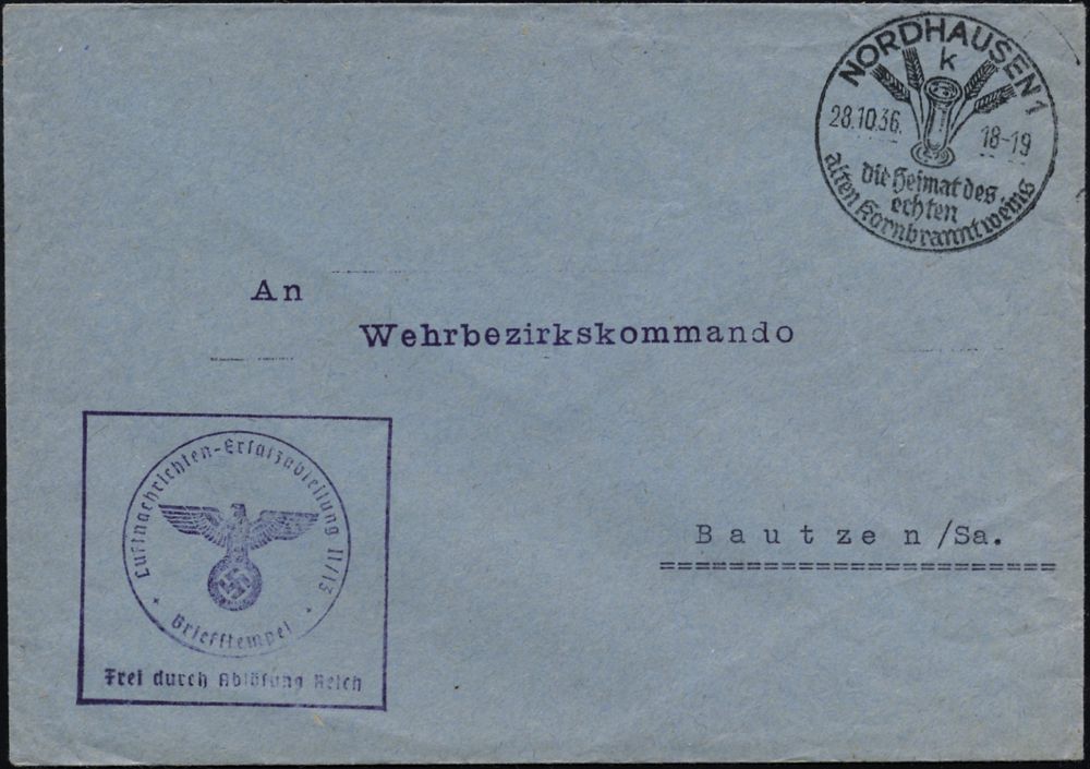2942 | 15 € | II. WELTKRIEG: LUFTWAFFEN-EINHEITEN / LUFTFELDPOST 1939-45 : NORDHAUSEN 1/ k/ die Heimat/ des..Kornbranntweins 1936 (28.10.) HWSt (Korn, Schnapsglas) + viol. HdN: FdAR/ Luftnachrichten-Ersatzabt.II-13, klar gest. Wehrmachts-Dienstbf. n. Bautzen (Bo.9 ,nur 1 1/2 Jahre verwendet!) | ![]() | |