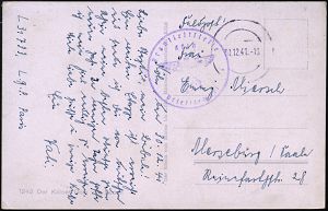 2933 | 12 € | II. WELTKRIEG: LUFTWAFFEN-EINHEITEN / LUFTFELDPOST 1939-45 : Köln 1941 (30.12.) stummer 2K-Steg = Tarnstempel Köln + viol. 1K-HdN: Frontleitstelle/Köln + hs. Fp.-Nr.: L 31 733 = Kraftwagen-Werkstatt-Zug der Luftwaffe 56, klar gest. Feldpost-Foto-Ak.: Kölner Dom + Glocke n. Merseburg | ![]() ![]() | |