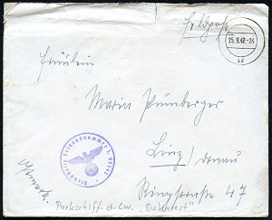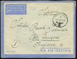 2967 | 20 € | II. WELTKRIEG: LUFTWAFFEN-EINHEITEN / LUFTFELDPOST 1939-45 : DEUTSCHES REICH / RUMÄNIEN 1942 (26.7.) 1K: FELDPOST/g/--- + blauer 1K-HdN: Feldpost Nr. L 18 500 Org./Lg. Pa. Wien.. = Deutsche Militär-Mission der Luftwaffe, R u m ä n i e n ! + rs. hs. Abs., klar gest., seltener Feldpost-Bf. + Inhalt n. Wien, vergl. Los Nr. 2968 | ![]() ![]() | |