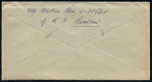 2938 | 15 € | II. WELTKRIEG: LUFTWAFFEN-EINHEITEN / LUFTFELDPOST 1939-45 : MARKERSDORF (PIELACH) 1941 (19.5.) 2K-Steg + viol. aptierter 1K-HdN: (Schüler)/ Fl.(ieger) Ausb.(ildungs) Rgt. 72 (Rest entfernt) + rs. hs. Abs.: "..Fliegerhorst Markersdorf..", klar gest. Feldpost-Bf. n. Wien | ![]() | |