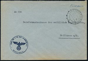 2956 | 12 € | II. WELTKRIEG: LUFTWAFFEN-EINHEITEN / LUFTFELDPOST 1939-45 : WALDPOLENZ/ a/ über/ WURZEN 1940 (18.10.) 2K-Steg = PSt. I + viol. 1K-HdN.: Blindflugschule I/ Schülerkompanie + hs. Abs.: "..Blindflugschule 1.. Lehrgang 21/40" (rechts etw. undeutl.) Feldpost-Kt. n. Hamburg | ![]() | |