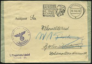 2913 | 18 € | II. WELTKRIEG: LUFTWAFFEN-EINHEITEN / LUFTFELDPOST 1939-45 : BAYREUTH 2/ a/ DIE STADT/ RICHARD/ WAGNERS 1942 (12.7.) MaWSt (Kopfbild R. Wagner) + viol. 1K-HdN: Fliegertechn. Schule/3. Schülerkompanie + viol. 2L: 3./ Fliegertechn. Schule 6/.. , klar gest. Recycling-Feldpost-Bf. n. Berlin (Bo.7 A) | ![]() | |