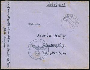 2939 | 10 € | II. WELTKRIEG: LUFTWAFFEN-EINHEITEN / LUFTFELDPOST 1939-45 : MARKERSDORF (PIELACH) 1943 (5.6.) 2K-Steg + blauer 1K-HdN: Flugzeugführerschule A/B 72 Schülerkompanie + vs. hs. Abs., Feldpost-Bf. + Inhalt n. Freiburg/Brsg. | ![]() | |