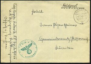2991 | 14 € | II. WELTKRIEG: LUFTWAFFEN-EINHEITEN / LUFTFELDPOST 1939-45 : GENERALGOUVENEMENT 1941 (28.XII.) stummer, polnischer 1K = Tarnstempel Alexandrowo + viol. 1K-HdN: Luftgaukommando II Flugmeldedienst/K 4 + rs. hs. Abs.: "..Flugmeldedienst Abholpostamt Georgendorf über Alexandrowo..", klar gest. Feldpost-Bf. n. Schwerin | ![]() | |