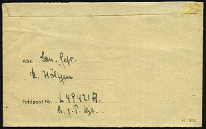 2974 | 15 € | II. WELTKRIEG: LUFTWAFFEN-EINHEITEN / LUFTFELDPOST 1939-45 : Breslau 1943 (20.6.) 1K: FELDPOST/e/--- + schw.-viol.1K-Hdn: Fp.-Nr. L 31561 = J a g d - Geschwader 52 + rs. hs. Abs.: "..L - 31561, Lg. P. A. Breslau", kleiner Feldpost-Bf. + Inhalt n. Weiden/Opf. | ![]() ![]() | |