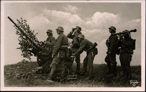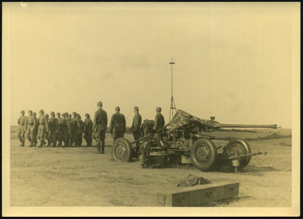 3026 | 15 € | LUFT- & BOMBENKRIEG / KINDER-EVAKUIERUNG (KLV) / FLAK-EINHEITEN (1939-45) : Munster Lager 1940 (ca.) s/w.-Foto: Flak-Geschütz 4cm (Typ Bofors?) + Mannschaft marschierend (Format: 13 x 18 cm) | ![]() | |