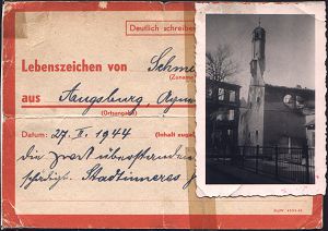 3005 | 25 € | LUFT- & BOMBENKRIEG / KINDER-EVAKUIERUNG (KLV) / FLAK-EINHEITEN (1939-45) : Augsburg 1944 (27.2.) rote Lebenszeichen-Kt., Druckvermerk Std.W. 4304 43 (starke Mäng., geklebt u. hinterlegt) + orig. Foto der zerstörten Kirche "St. Ursula", 2 interss. Dokumente des Luftkrieges!, sehr seltene Kombination! (ex Slg. Heimann) | ![]() | |