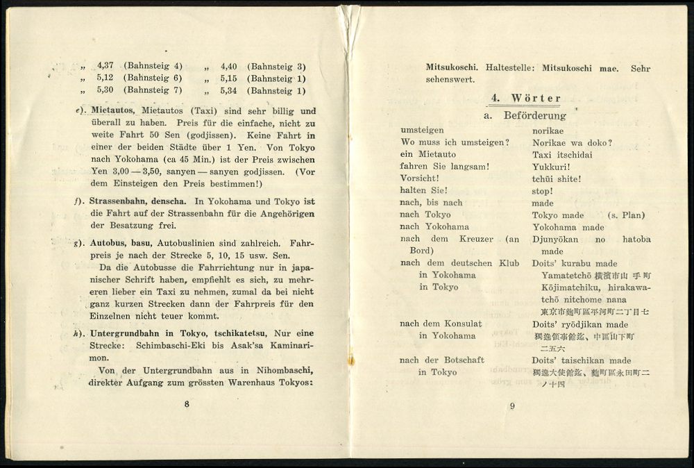 3063 | 30 € | DEUTSCHE KRIEGSMARINE 1933-1939 : DEUTSCHES REICH 1937 (Jan.) Broschüre "KREUZER EMDEN IN JAPAN" mit Titelbild Fujiama, 20 Seiten + Stadtplan Tokyo mit div. Adressen und Sprachführer (rs. schwach fleckig) sonst gute Erhaltung!, sehr selten! (keine Kopie!) | ![]() ![]() ![]() | |