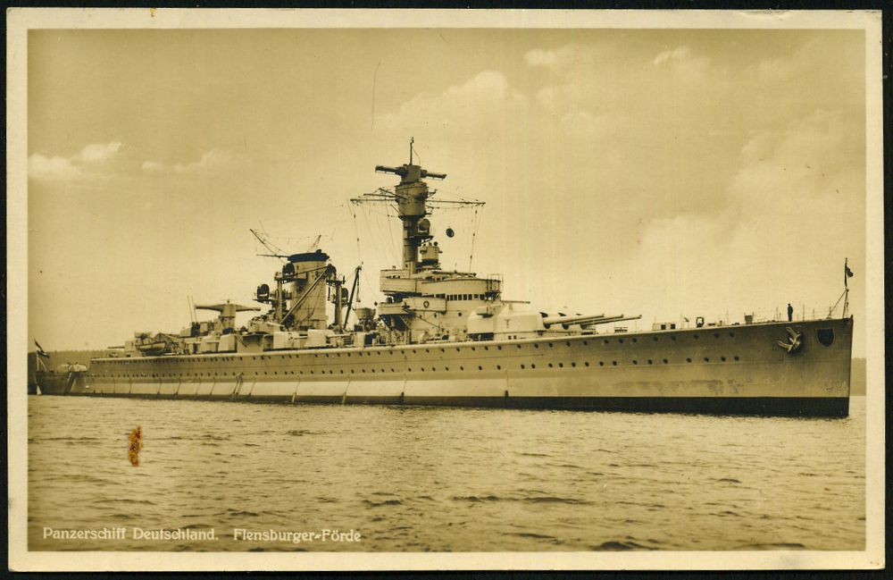 3060 | 10 € | DEUTSCHE KRIEGSMARINE 1933-1939 : DEUTSCHES REICH 1935 (ca.) s/w.-Foto-Ak.: Panzerschiff "Deutschland", Flensburger Förde (kl. Fleckchen) ungebr. (ohne Uhv.) | ![]() | |