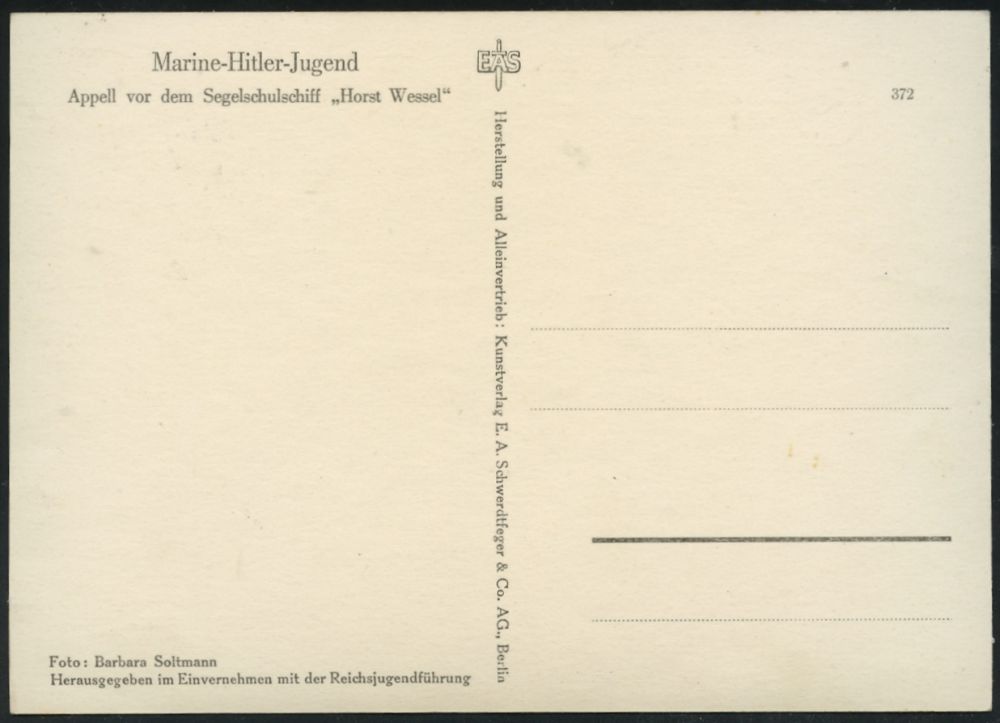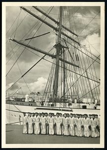 3074 | 12 € | DEUTSCHE KRIEGSMARINE 1933-1939 : DEUTSCHES REICH 1938 (ca.) s/w.-Foto-Ak.: Marine-Hitler-Jugend, Segelschulschiff "Horst Wessel" , ungebr. (Verlag EAS, Schwerdtfeger, München Nr.372) | ![]() ![]() | |