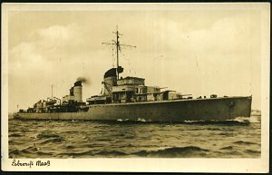 3069 | 10 € | DEUTSCHE KRIEGSMARINE 1933-1939 : DEUTSCHES REICH 1938 (ca.) s/w.-Foto-Ak.: Zerstörer "Leberecht Maaß" (= "Z 1") ungebr., (Verlag J. Simonsen, Oldenbg.) | ![]() | |