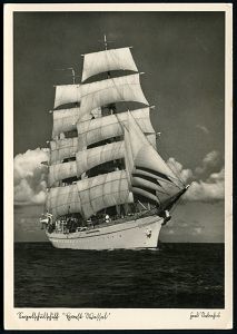 3073 | 10 € | DEUTSCHE KRIEGSMARINE 1933-1939 : DEUTSCHES REICH 1938 (ca.) s/w.-Foto-Ak.: Segelschulschiff "Horst Wessel", Foto Ferd. Urbahns , ungebr. (Verlag EAS, Schwerdtfeger Nr.380, München) | ![]() | |