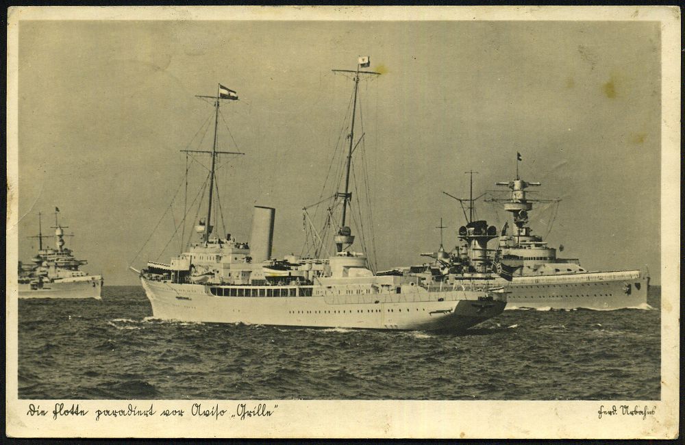 3137 | 12 € | DEUTSCHE KRIEGSMARINE & MARINE-FELDPOST II. WELTKRIEG : DEUTSCHES REICH 1942 (2.10.) s/w.-Foto-Ak.: Die Flotte paradiert vor Aviso "Grille", stumme 1K-Brücke = Tarnstempel + viol. 1K-HdN: Feldpostnr. 32778 = Stab Marine-Flak-Abtlg. 272 , klar gest. Feldpost-Ak. n. Kärnten | ![]() ![]() | |