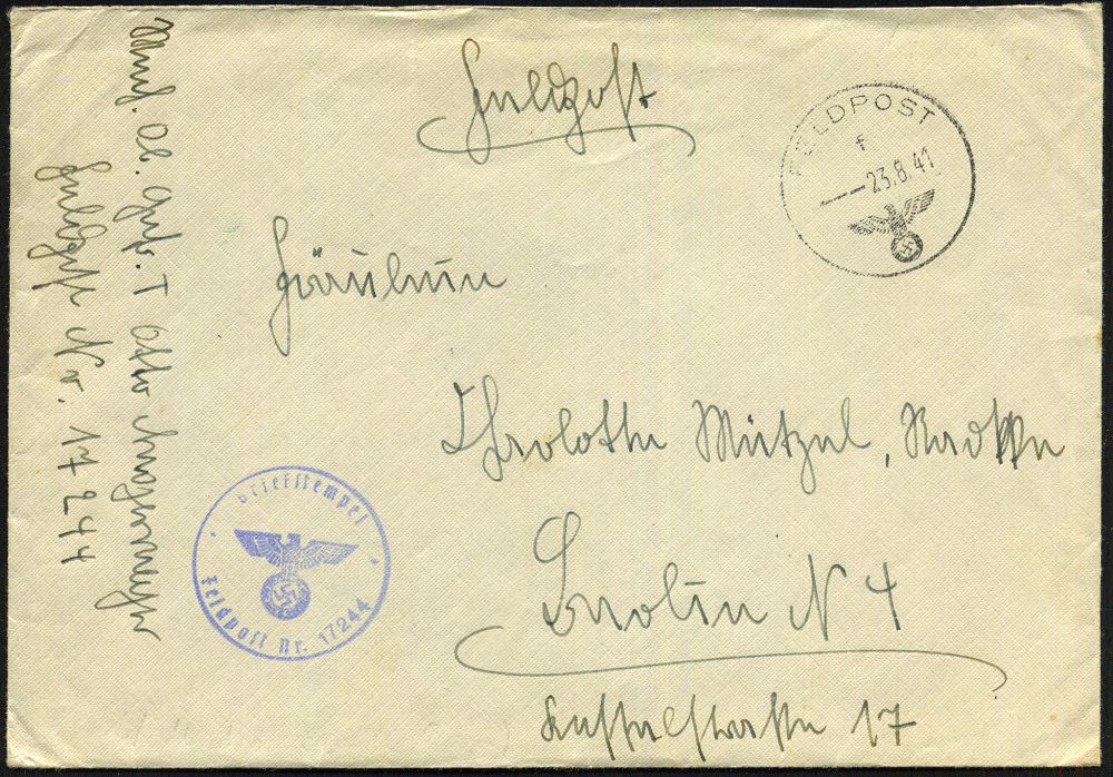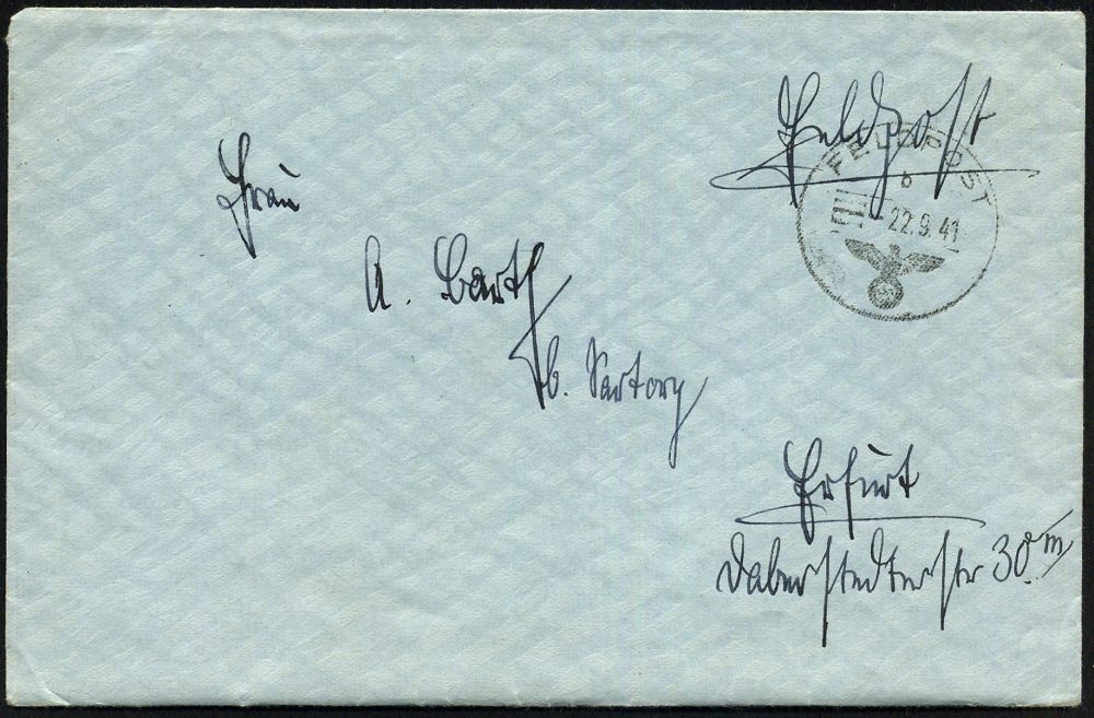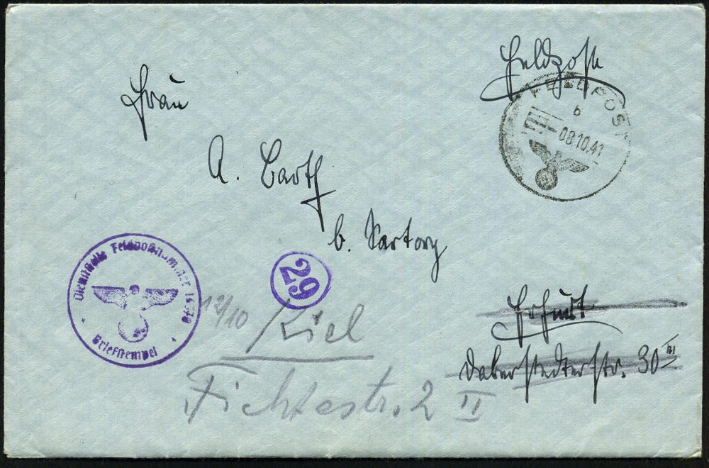 3145 | 25 € | DEUTSCHE KRIEGSMARINE & MARINE-FELDPOST II. WELTKRIEG : DEUTSCHES REICH 1941 (Sept./Okt.) 2x 1K: FELDPOST/b/--- + viol. 1K-HdN: Feldpostnr. 16370, 2x rs. hs. Abs. Fp.-Nr. 16370 = Admiral S c h w a r z e s M e e r , 2 Feldpost-Briefe + Inhalt + 1 Feldpost-Bf. (gest. LIEZEN (STEIERM)/d) a n Feldpost-Nr. 16 370 + Inhalt, 3 Belege! | ![]() ![]() ![]() ![]() ![]() | |