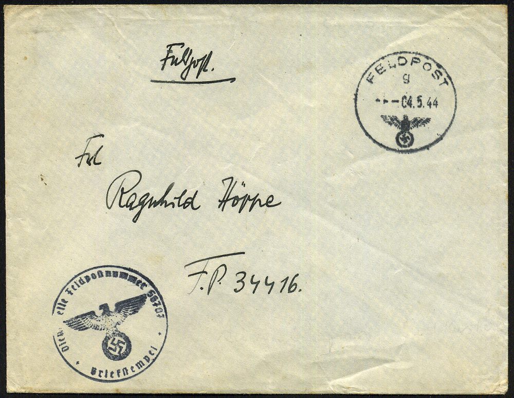 3160 | 18 € | DEUTSCHE KRIEGSMARINE & MARINE-FELDPOST II. WELTKRIEG : DT.BES.FRANKREICH 1944 (4.5.) 1K: FELDPOST/g/--- + vio. 1K-HdN: Feldpostnr. 56707 = Admiral französ. Südküste , dort fand Aug. 1944 eine weitere alliierte Invasion statt: Unternehmen "Dragoon" + rs. hs. Abs., klar gest. Feldpost-Bf. an Fp.-Nr. 34416 | ![]() | |
