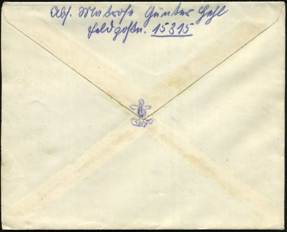 3124 | 15 € | DEUTSCHE KRIEGSMARINE & MARINE-FELDPOST II. WELTKRIEG : Warnemünde 1942 (6.11.) stummer 2K-Steg = Tarnstempel Warnemünde + viol. 1K-HdN: Feldpost-Nr. M 24122 = Wach-Flottille Warnemünde + viol. 3L: Dienststelle/Feldpostnr. M 12122.. , gr. Feldpost-Bf. (gefaltet, oben kl. Riß geschl.) n. Kiel (Format A5) | ![]() | |