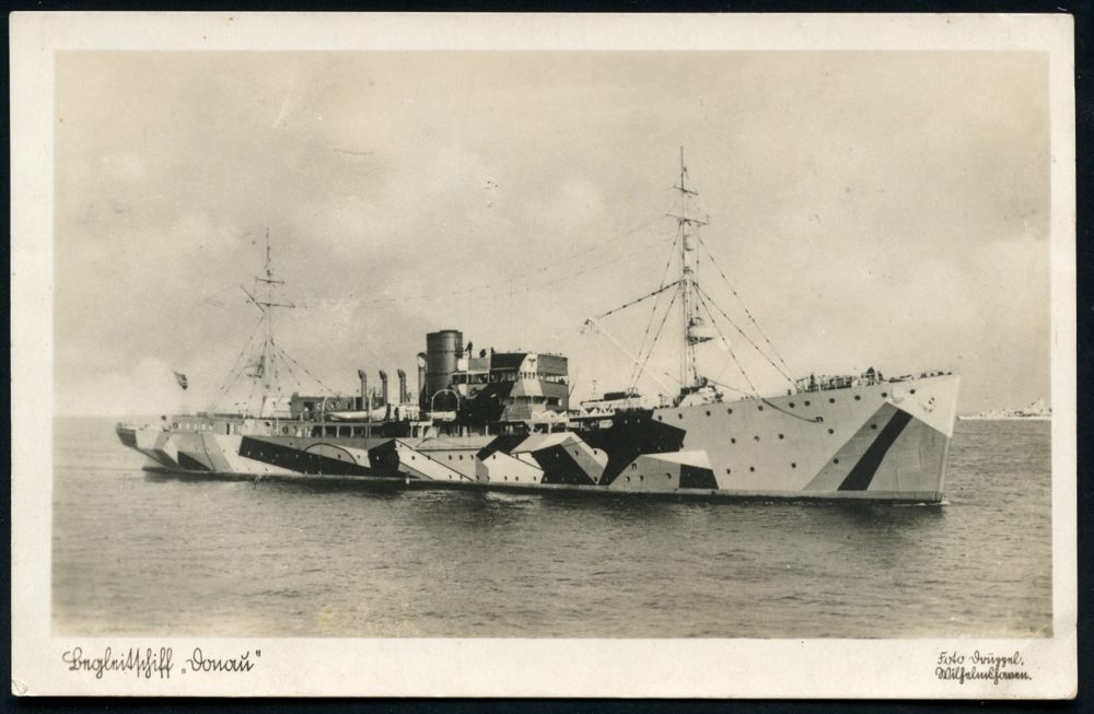 3138 | 14 € | DEUTSCHE KRIEGSMARINE & MARINE-FELDPOST II. WELTKRIEG : DEUTSCHES REICH 1942 (ca.) s/w.-Foto-Ak.: Begleitschiff "Donau" (= ex "Nicea") = U-Boot-Begleitschiff (rs. hs. Vermerk "untergegangen 17.7.1945 in Flensburg") ungebr. (Verlag Trinks & Co., Leipzig) | ![]() | |