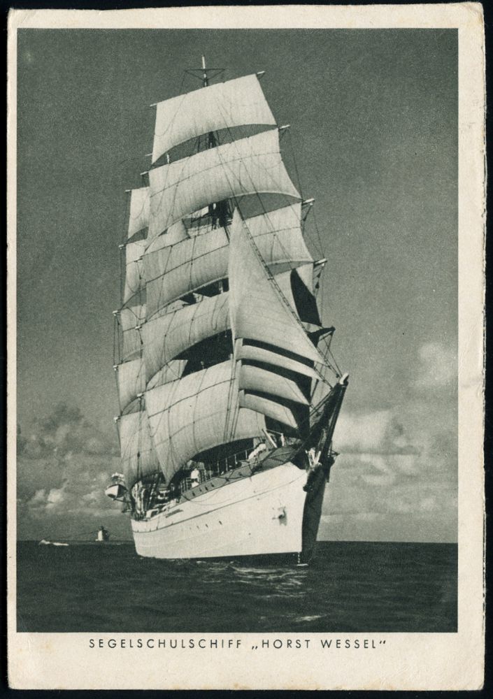 3140 | 12 € | DEUTSCHE KRIEGSMARINE & MARINE-FELDPOST II. WELTKRIEG : DEUTSCHES REICH 1939 (6.9.) s/w.-Foto-Ak.: Segelschulschiff "Horst Wessel", Fotograf Hoffmann, Berlin , Serien-MaWSt.: POTSDAM 1/IV/Vorsicht/mit Feuer in/Wald u. Heide (Bo.S 160 A) Feldpost-Kt. n. Bünde | ![]() ![]() | |