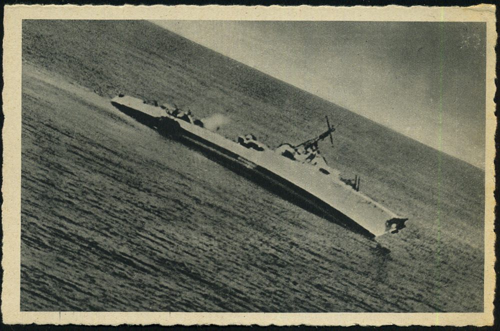 3177 | 10 € | DEUTSCHE KRIEGSMARINE & MARINE-FELDPOST II. WELTKRIEG : ITALIEN 1942 s/w.-Foto-Ak.: sinkendes alliiertes Kriegsschiff (Aufklärungsfoto italien. Luftwaffe) mit amtl. Freigabe-Vermerk , ungebr. | ![]() | |