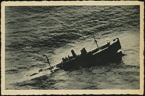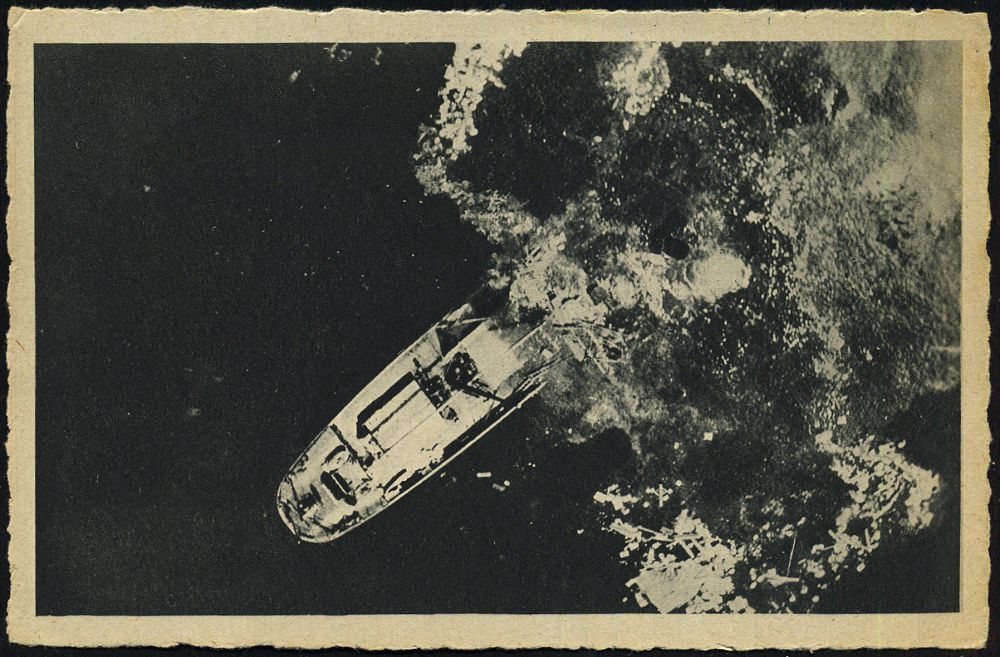 3176 | 10 € | DEUTSCHE KRIEGSMARINE & MARINE-FELDPOST II. WELTKRIEG : ITALIEN 1942 s/w.-Foto-Ak.: sinkendes alliiertes Frachtschiff (Luftaufklärungsfoto italien. Luftwaffe) mit Freigabe-Vermerk , ungebr. | ![]() | |