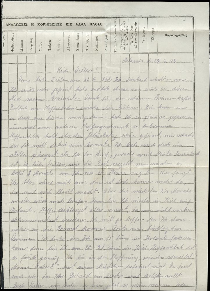 3163 | 18 € | DEUTSCHE KRIEGSMARINE & MARINE-FELDPOST II. WELTKRIEG : DT.BES.GRIECHENLAND 1942 (30.3.) 1K: FELDPOST/a/--- + rotviol. Ra.: FELDPOST/ Feldpostnr. 01746 = Kriegsmarine-Werft Salamis + hs. Abs., Feldpost-Bf. (kl. Randmäng., rs. Klappe fehlt) + Inhalt n. Kiel | ![]() ![]() | |