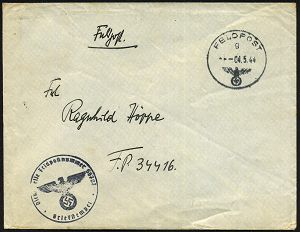 3150 | 14 € | DEUTSCHE KRIEGSMARINE & MARINE-FELDPOST II. WELTKRIEG : DEUTSCHES REICH 1944 (23.5.) 1K: FELDPOST/b/--- + viol. 1K-HdN: Feldpostnr. M 30025 = 3. Minensuch-Flotten-Kommando + hs. Abs., klar gest. Feldpost-Bf. + viel Inhalt n. Kiel | ![]() | |