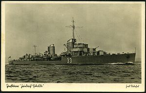 3132 | 10 € | DEUTSCHE KRIEGSMARINE & MARINE-FELDPOST II. WELTKRIEG : DEUTSCHES REICH 1939 (ca.) s/w.-Foto-Ak.: Zerstörer "Paul Jacobi" (= "Z 5") ungebr. (Bilder-Verlag F.F., W´haven) | ![]() | |