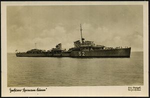 3136 | 12 € | DEUTSCHE KRIEGSMARINE & MARINE-FELDPOST II. WELTKRIEG : DEUTSCHES REICH 1939 (ca.) Color-Künstler-Ak.: Minensucher auf dem Marsch, sign. Kablo , ungebr. (Verlag Carl Werner, Reichenbach/Vgtl.) | ![]() | |