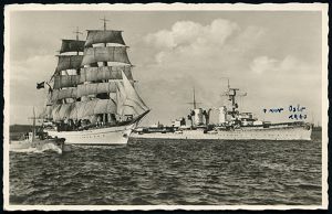 3139 | 12 € | DEUTSCHE KRIEGSMARINE & MARINE-FELDPOST II. WELTKRIEG : Kiel 1940 (23.12.) s/w.-Foto-Ak.: Segelschulschiff "Gorch Fock" u. Kl. Kreuzer "Karlsruhe" = Reklame-Ak. der Marinewerft "Deutsche Werke Kiel AG" (gest. Berlin) Bedarf | ![]() | |