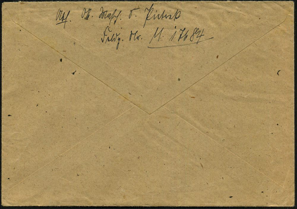 3230 | 30 € | DEUTSCHE MARINE-SCHIFFSPOST II.WELTKRIEG : DEUTSCHES REICH 1943 (18.3.) 1K: FELDPOST /b/--- + viol. 1K-HdN: Feldpostnr. M 51467 + rs. viol. 1L: Feldpost-Nr. 51467 = Flakkreuzer "Thetis" (ex norweg. Küstenpanzerschiff "Harald Haarfrage") ab 1.2.1941 Kriegsmarine- Flak-Kreuzer, nachgesandter Feldpost-Bf. + Inhalt (minim. Eckrißchen) rs. hs. Abs. n. Kiel, Einsatz Norwegen, Flakschutz für Schlachtschiff "Tirpitz" etc. | ![]() | |