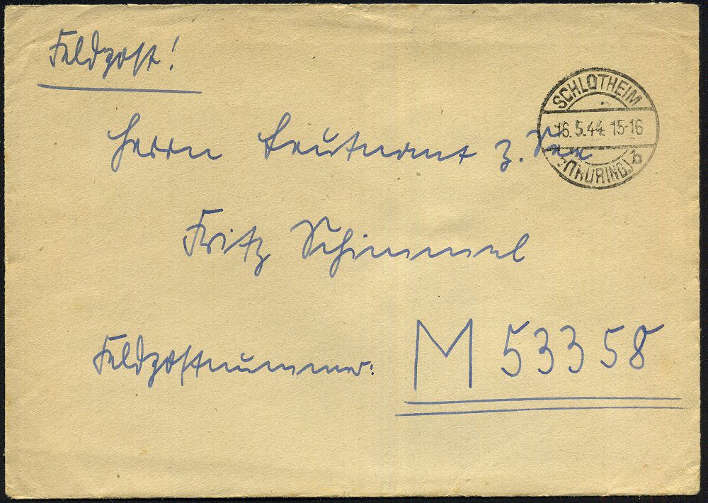 3196 | 20 € | DEUTSCHE MARINE-SCHIFFSPOST II.WELTKRIEG : SCHLOTHEIM/ (THÜRING.)/ b 1944 (16.5.) 1K-Brücke auf Feldpost-Bf. + Inhalt an Feldpost-Nr. M 53358 = Schwerer Kreuzer "Admiral Hipper", ab 1.3.1944 Wieder-Indienststellung als Seekadetten-Ausbildungsschiff ! | ![]() | |