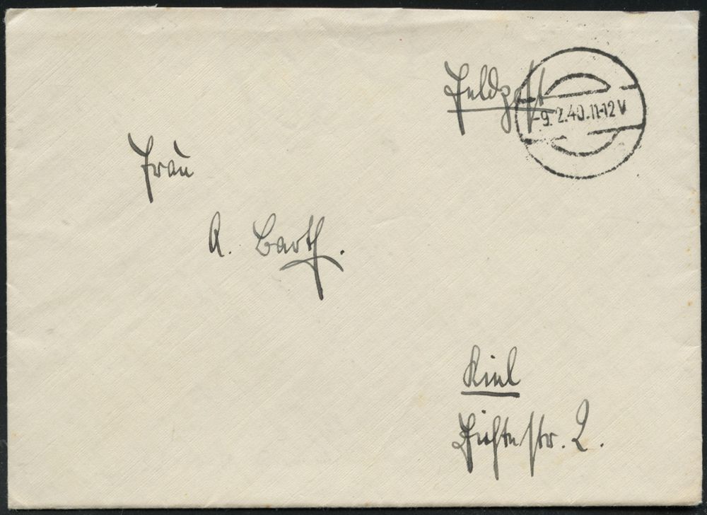 3210 | 90 € | DEUTSCHE MARINE-SCHIFFSPOST II.WELTKRIEG : DEUTSCHES REICH 1940 (26.2.) 2K-Bord-PA.: DEUTSCHE KRIEGSMARINE SCHIFFSPOST/e/Nr.5 = Kreuzer "Lützow", unzulässig verwendeter Bordstempel! (5. T-Flottille) Marine-Feldpost-Bf. (rs. Fp.-Nr. 35078) + Inhalt n. Düsseldorf, sehr selten! (Mi.2, + 300.- EUR) | ![]() ![]() | |