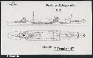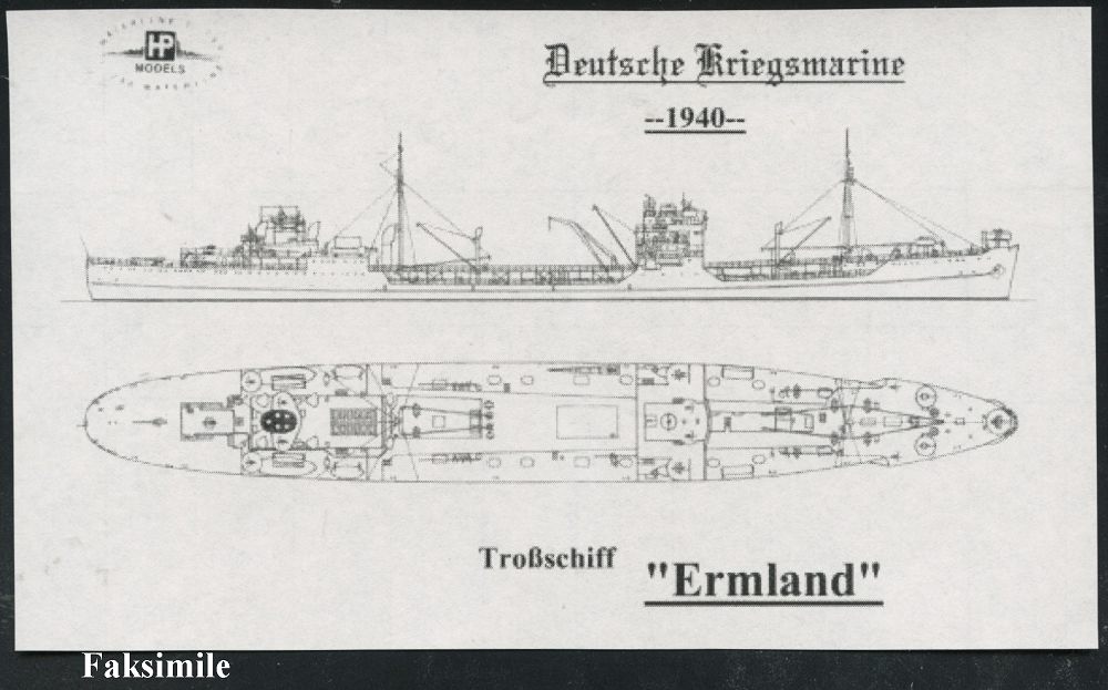 3180 | 50 € | DEUTSCHE MARINE-SCHIFFSPOST II.WELTKRIEG : Danzig 1940 (19.11.) seltener 2K-Steg: FELDPOST/I = Tarnstempel Danzig (Mi.6 + 200.- EUR, 2009) + blauer 1K-HdN: Kriegsmarine/..Feldpostnr. M 07088 = Troßschiff "Ermland" (Tanker) + hs. Abs., klar gest. Feldpost-Bf. (oben Seiteriß geschl.) an Fp.-Nr. 16691 (Inf. Rgt.399) + Abb.-Kopie des Schiffes | ![]() ![]() | |