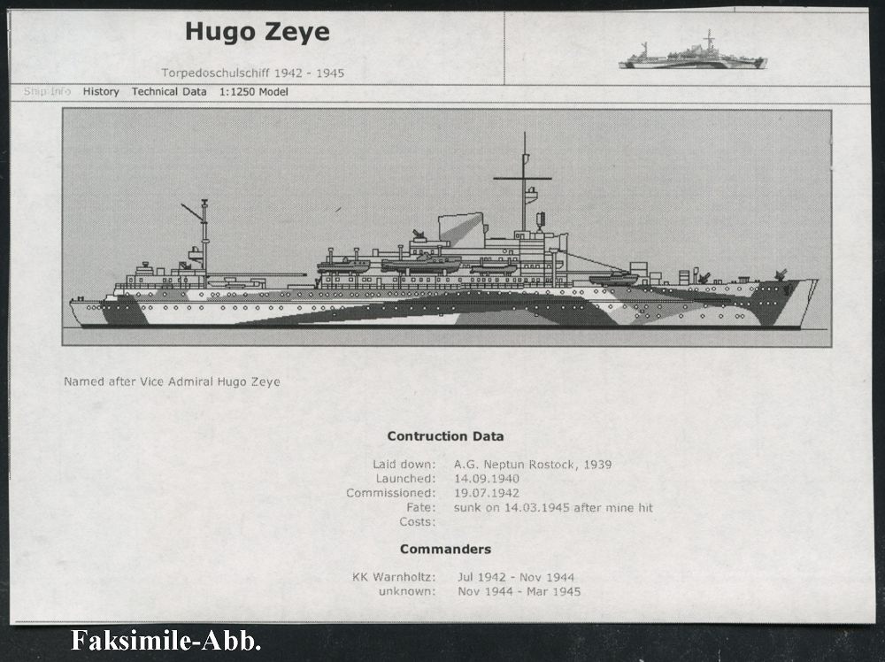 3235 | 25 € | DEUTSCHE MARINE-SCHIFFSPOST II.WELTKRIEG : DEUTSCHES REICH 1943 (1.11.) stummer 2K-Steg = Tarnstempel + viol. 1K-HdN: Dienststelle/der Feldpost-Nr. M 29 340 = Torpedo-Schulschiff "Hugo Zeye"+ vs hs. Abs. , klar gest. seltener Feldpost-Bf. (oben kl. Fleck) n. Kiel, das Schiff wurde am 4.7.1942 in Dienst gestellt und sank als Ostpreußen-Flüchtlingsschiff nach Minentreffer am 14.3.1945 bei Fehmarn | ![]() ![]() | |