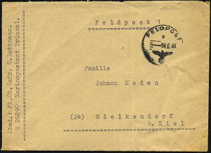 3237 | 25 € | DEUTSCHE MARINE-SCHIFFSPOST II.WELTKRIEG : DEUTSCHES REICH 1944 (18.4.) 1K: FELDPOST/e/--- + viol. 1K-HdN: Feldpostnr. M 51447 = Kanonenboot "K 2" + vs. hs. Abs., seltener Feldpost-Falt-Bf. mit Inhalt n. Schleswig | ![]() | |