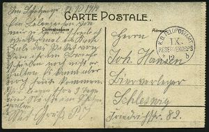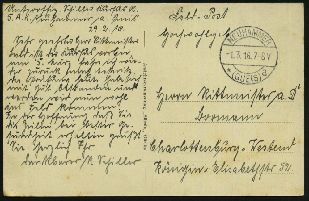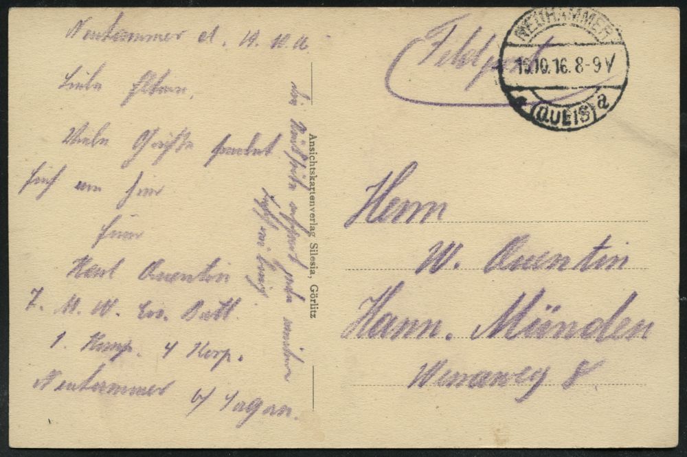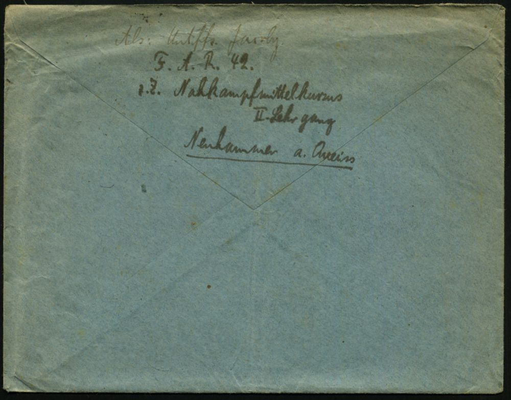 274 | 15 € | TRUPPENÜBUNGSPLÄTZE bis 1918 : NEUHAMMER/ *(QUEIS)/ a 1918 (5.10.) 1K-Brücke + viol. 1K-HdN: Ausbildungskursus für Nahkampfmittel/Neuhammer.. , rs. hs. Abs.: "F.(eld) A.(rtillerie) R.(egt.) 42 z. Z. Nahkampfmittelkursus..", klar gest., später Feldpost-Bf. + Inhalt (melancholischer Liebesbrief !) n. Hamburg | ![]() ![]() | |