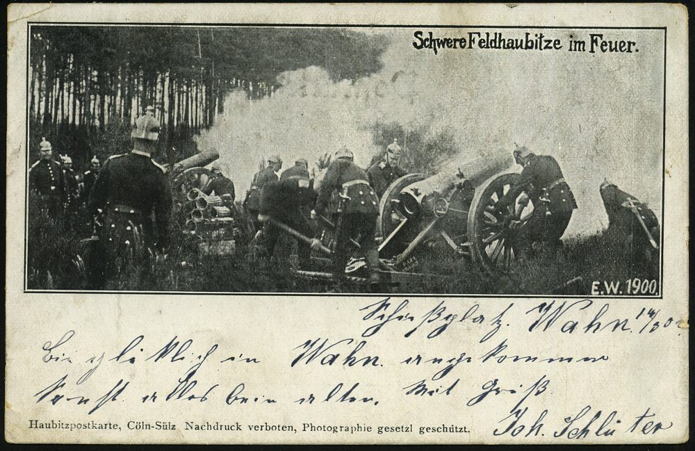 298 | 15 € | TRUPPENÜBUNGSPLÄTZE bis 1918 : WAHN/ (RHEINLAND)/ SCHIESSPLATZ/ ** 1902 (15.3.) 1K = Hauspostamt Truppenübungsplatz auf s/w.-Foto-Ak: Schwere Feldhaubitze im Feuer , Bedarf n. Plön, vs. AS (Mi.55) | ![]() ![]() | |