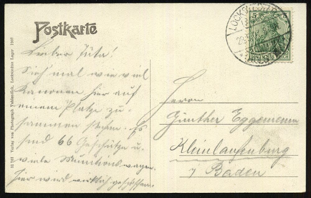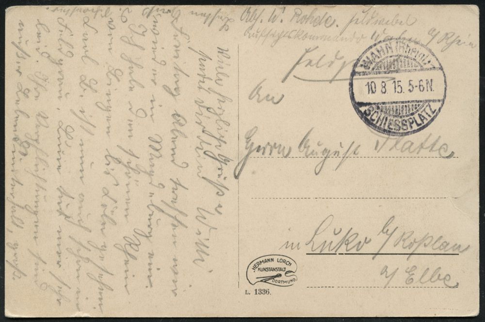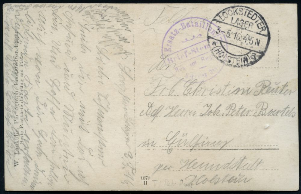 243 | 10 € | TRUPPENÜBUNGSPLÄTZE bis 1918 : LOCKSTEDTER/ LAGER/ *(HOLSTEIN)/ a 1915 (19.6.) 1K-Brücke mit UB "a" = Hauspostamt Truppenübungsplatz + hs. Abs., klar gest. Color-Feldpost-Ak.: LOCKSTEDTER LAGER KGL. KOMMANDANTUR n. Berlin (Uhv.No. 14190 Verl. M. Deising Lockstedter Lager) | ![]() ![]() | |