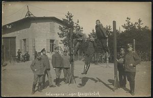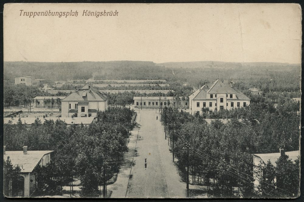 214 | 15 € | TRUPPENÜBUNGSPLÄTZE bis 1918 : KÖNIGSBRÜCK-/ * ÜBUNGSPLATZ/ a 1914 (1.11.) 1K-Brücke mit UB "a" auf individueller s/w.-Foto-Ak.: Eingang Truppeübungsplatz Königsbrück mit kriegsgef.Belgiern (?) + Bewachung , klar gest. Feldpost-Kt. n. Glaubitz (Uhv. G.GRAMSCH, DRESDEN-N.) | ![]() ![]() | |