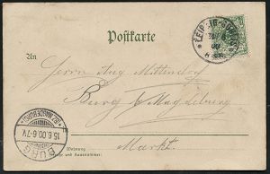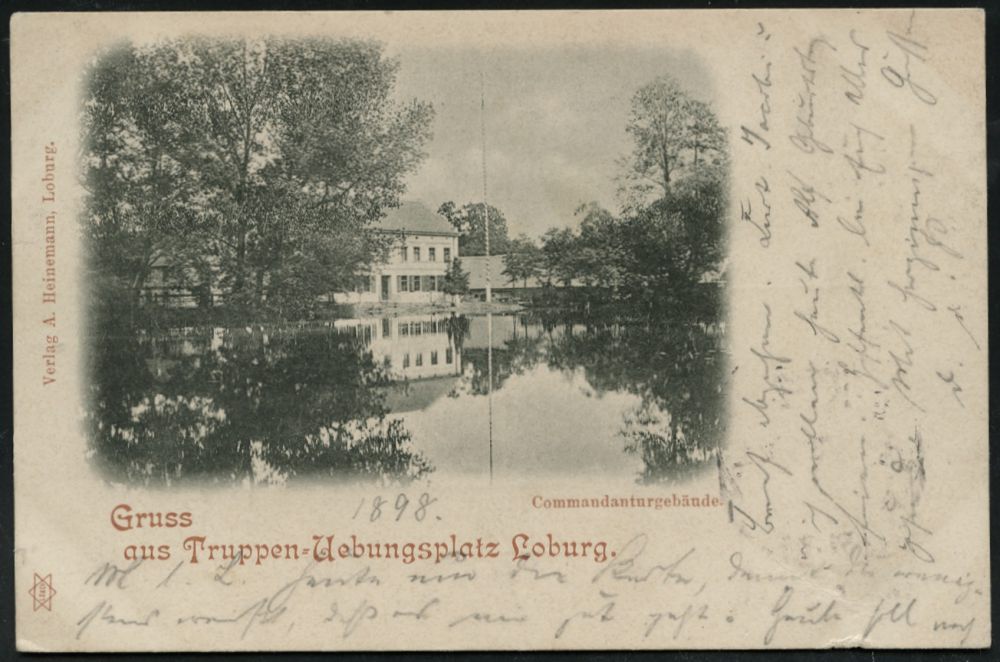 236 | 15 € | TRUPPENÜBUNGSPLÄTZE bis 1918 : Loburg 1898 (27.8.) 1K-Gitter: ALTENGRABOW/*** auf s/w.-Foto-Ak.: Gruss aus Truppen-Uebungsplatz Loburg (Commandantengebäude) Bedarf n. Halle/s., vs. Maschinen-AS.: HALLE (SAALE)/ 2 (ANKUNFT) = Postautomation! (Uhv. Verlag A. Heinemann, Loburg) | ![]() ![]() | |