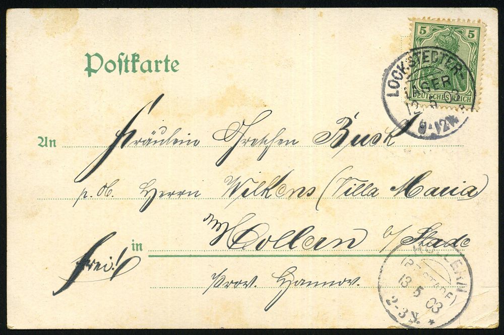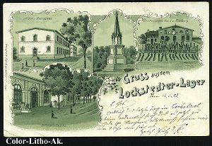 237 | 18 € | TRUPPENÜBUNGSPLÄTZE bis 1918 : LOCKSTEDTER LAGER/ ** 1895 (18.9.) kleiner 1K = Hauspostamt Truppenübungsplatz klar auf Color-Litho-Ak.: Gruss vom LOCKSTEDTER LAGER (4 Ansichten, 2x kl. Eckschürfung) Bedarf n. FREDEBURG, vs. AS. (Uhv.Verlag v. D. Vahlendick, Kellinghusen) | ![]() ![]() | |