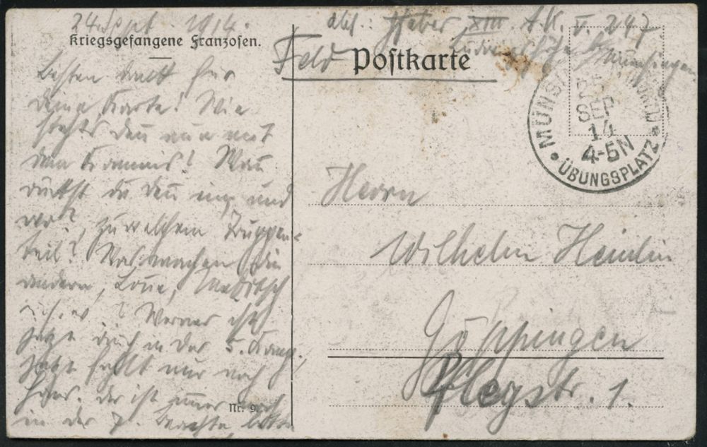 209 | 14 € | TRUPPENÜBUNGSPLÄTZE bis 1918 : Jüterbog 1914 (4.10.) 1K-Gitter: ALTES LAGER/(Kr. JÜTERBOG)/a = Hauspostamt Truppenübungsplatz + hs. Abs., klar gest. s/w.-Foto-Feldpost-Ak.: Gruss vom Schiessplatz.. (4 Ansichten) dabei Franzosen-Friedhof etc. (ohne Uhv.) | ![]() ![]() | |