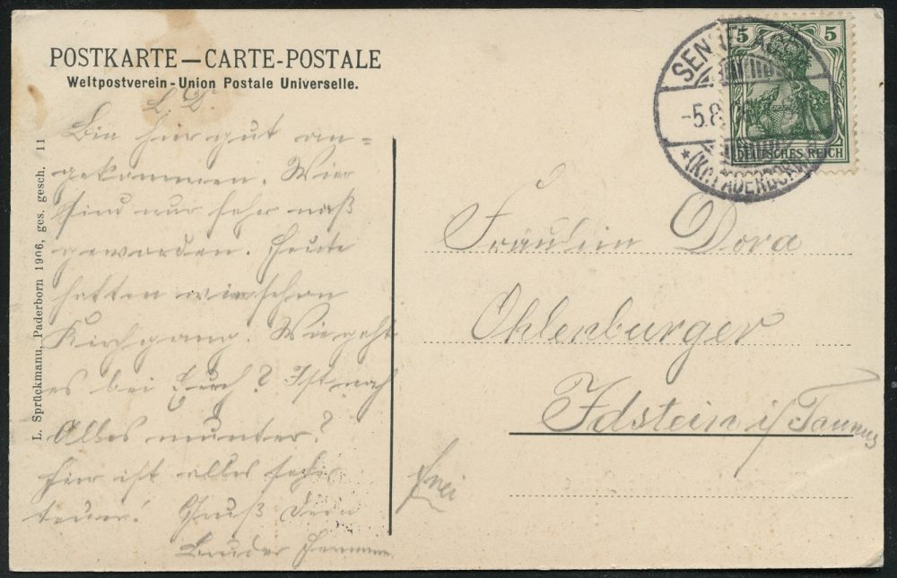 286 | 12 € | TRUPPENÜBUNGSPLÄTZE bis 1918 : SENNELAGER/ *(Kr.PADERBORN)/ a 1905 (10.4.) 1K-Gitter = Hauspostamt Truppenübungsplatz auf EF 5 Pf. Germania, Color-Foto-Ak.: Baracken, Bedarf n. Apolda (Uhv.: Verlag L. Sprückmann, Paderborn 0208) | ![]() ![]() | |