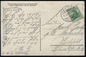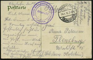 277 | 16 € | TRUPPENÜBUNGSPLÄTZE bis 1918 : OBERHOFEN/ (ELS.)/ ÜBUNGSPLATZ 1916 (14.4.) 1K-Brücke + viol. Zensur-3K-HdN.: Masch.(inen)-Gew.(ehr)-Ausbildungs-Kommando/ Oberhofen = Riemer unbekannt! , klar gest. Color-Litho-Ak.: Hagenau (5 Ansichten, dabei Dragoner-Kaserne) klar gest. Feldpost-Zensur-Kt. (n. Flensburg) | ![]() ![]() | |