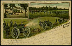 296 | 16 € | TRUPPENÜBUNGSPLÄTZE bis 1918 : Thorn 1914 (15.12.) Color-Litho-Ak.: Gruss vom Schiessplatz THORN mit 3 Artillerie-Ansichten (kl. Eckbugspur) 1K. K. D. FELDPOSTEXPED./9.KAVALLERIE-/DIVIS. (nicht ganz voll), Feldpost-Kt. (n. Magdeburg) | ![]() ![]() | |