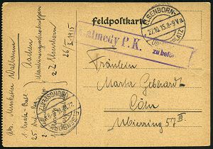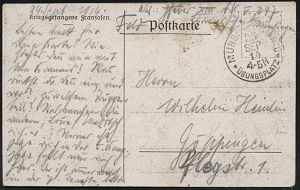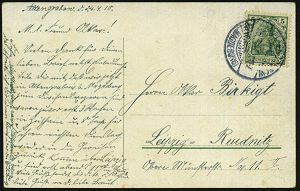 160 | 18 € | TRUPPENÜBUNGSPLÄTZE bis 1918 : Altengrabow 1915 (17.7.) Kgf.-Vordruck-Kt.: Mannschaftsgefangenenlager Truppenübungsplatz ALTEN-GRABOW + viol. Zensur-2K: Prüfungsstelle der Kommandantur - Gefangenen-Lager/-Geprüft-/F.a. (Wo.3 d) + viol. 1K-HdN: II. Bataillon, Ausl.-Kgf.-Zensur-Kt. (n. St. Rimay, rs. AS.) | ![]() ![]() | |