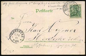 201 | 18 € | TRUPPENÜBUNGSPLÄTZE bis 1918 : HAMMERSTEIN/ ÜBUNGSPLATZ/ ** 1901 (8.8.) seltener 1K-Segment = Hauspostamt Truppenübungsplatz bei Schlochau, individuelle s/w.-Foto-Ak.: Soldaten-Gruppen-Foto (Bedarfsspuren, Frankatur etw. überstehend, vs. etw. fleckig) klar gest. Bedarfs-Kt. (Mi.70) | ![]() ![]() | |