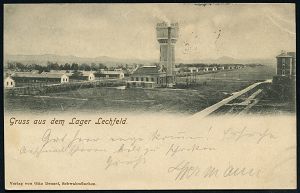 228 | 10 € | TRUPPENÜBUNGSPLÄTZE bis 1918 : LAGER LECHFELD 1909 (4.4.) 1K ohne Lücke u. ohne Bindestrich auf s/w.-Foto-Ak.: Gruss aus Lager Lechfeld (Baracken mit Wachposten, Wasserturm) Bedarf (Uhv. 09 3950 Verl. Ottm.Denzel, Schwabmünchen) | ![]() ![]() | |