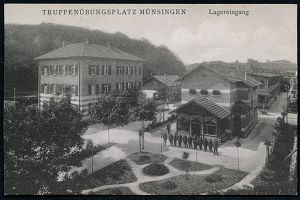 257 | 10 € | TRUPPENÜBUNGSPLÄTZE bis 1918 : MÜNSINGEN (WÜRTT.)/ *ÜBUNGSPLATZ* 1910 (4.4.) 1K = Hauspostamt Truppenübungsplatz klar auf s/w.-Foto-Ak.: Lagereingang (mit Wachhaus u. Wachsoldaten) Bedarf n. Ludwigsburg (Mi.85) | ![]() ![]() | |
