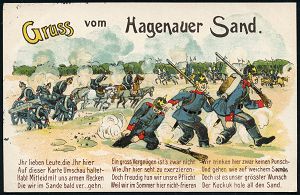 278 | 20 € | TRUPPENÜBUNGSPLÄTZE bis 1918 : OBERHOFEN/ (ELS:)/ ÜBUNGSPLATZ 1916 (19.11.) 1K-Brücke = Hauspostamt Truppenübungsplatz + viol. Zensur-Ra.: Hagenau (unvollstäng.) Color-Litho-Künstler-Feldpost-Ak.: Gruss vom Hagenauer Sand n. Stuttgart (ohne Uhv.) | ![]() ![]() | |